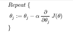위의 Cost Function식을 합치면 다음과 같이 표기할 수 있습니다. 하지만 우리가 찾고 있는 것은 비용함수를 가장 작게하는 파라미터값을 찾아주는 것이 목적입니다. 그래서 iteration을 하였을 때 식으로 표기하면 다음과 같습니다.