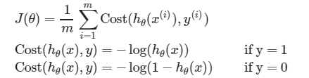 선형함수인경우와 다르게 비선형함수인 Logistic Regression의 경우에 Cost Function 그래프로 non-convex형태가 되어 global Minimum을 그래프가 울퉁불퉁해 찾을 수 없게 됩니다. 그래서 선을 smooth하게 바꿔주기위해 Cost Function을 다음과 같이 새로 정의하게 됩니다.