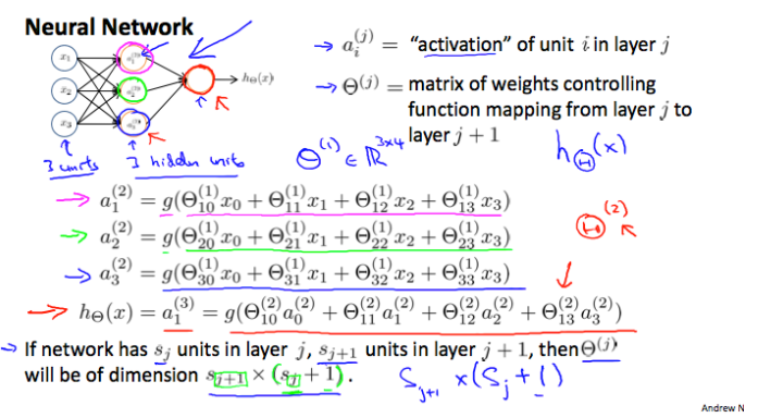 고로 theta는 3 X 4이고 (activation node 개수 X (x개수 + 1 ) )가 된다.